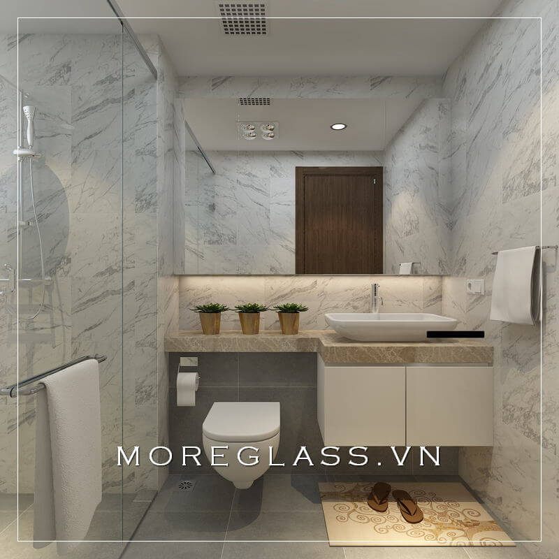 Độc đáo với mẫu nhà vệ sinh hiện đại với nội thất đơn giản, tiện nghi sử dụng gạch ốp tường màu trắng vân mây sang trọng, cuốn hút.