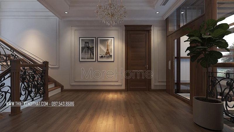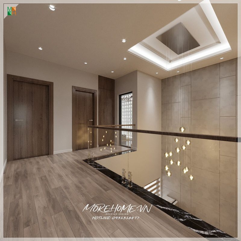 Hành lang tầng được trang trí bằng các vách kính trong suốt tạo nên một không gian thoáng đãng, hiện đại và phù hợp với xu hướng thời đại hiện nay.