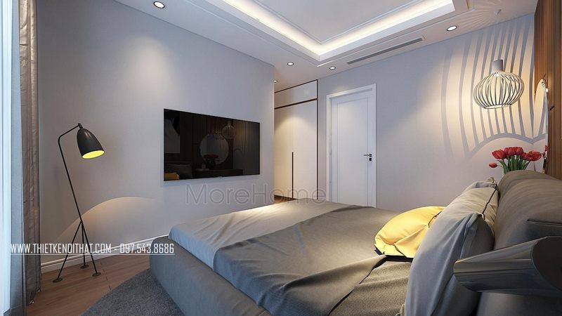 Để tạo độ thông thoáng và lấy ánh sáng tự nhiên cho phòng ngủ, thiết kế căn phòng với 2 cửa sổ lớn.