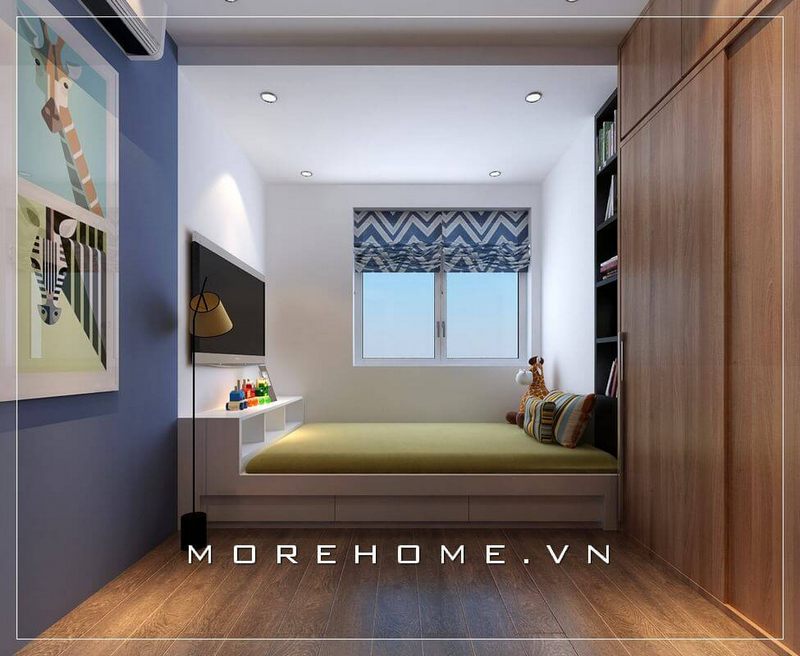 Thiết kế nội thất phòng ngủ trẻ em theo phong cách hiện đại, đơn giản nhưng vẫn đầy đủ tiện nghi.